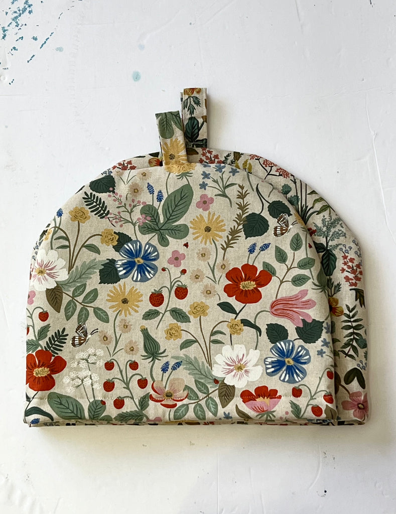 Tea Pot Cozy, Quilted Linen, 4-6 Cup, Rifle Paper Co, Strawberry Fields Natural